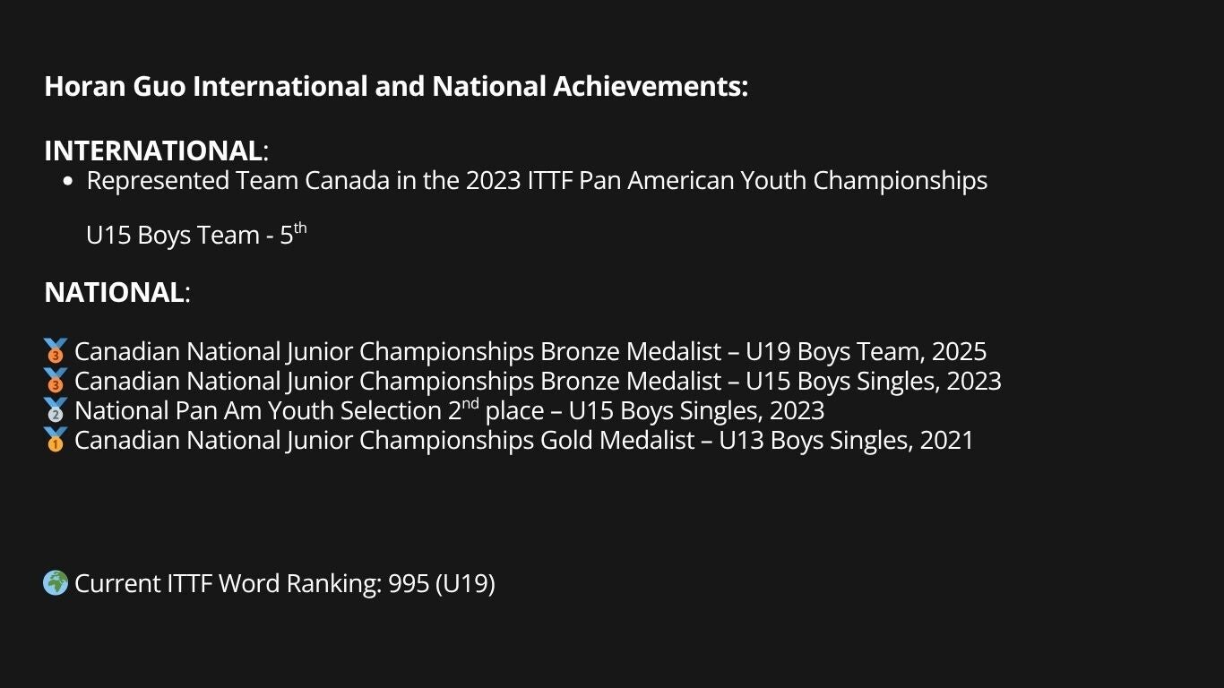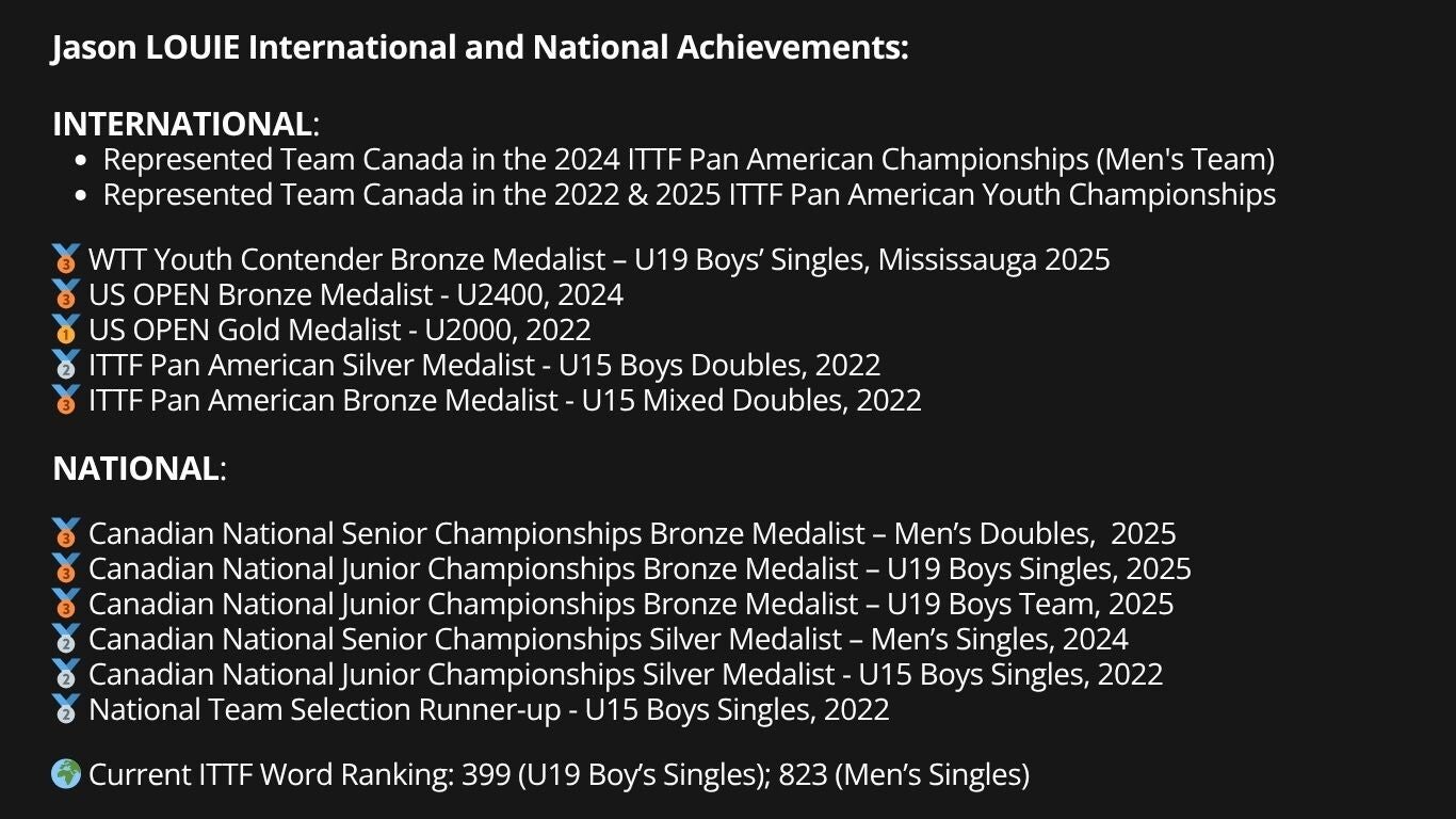 Coach Jason Louie - U19 Boys National Team member, trained under Table Tennis Canada certification.